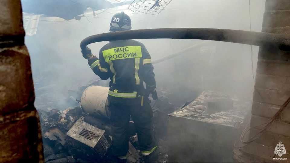 По прибытию спасателей, на территории частного домовладения был охвачен огнем гараж, частично деревянный фронтон дома. Площадь пожара составила 60 квадратных метров. Предварительная причина возгорания - аварийный режим работы...