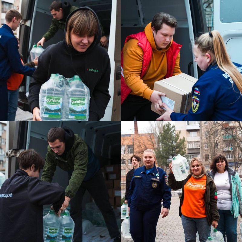 Волонтеры привезли продуктовые наборы и бутилированную воду. Каждому жителю Полог было оказано должное внимание. Кроме того, в городе продолжаются плановые аварийно-восстановительные работы.