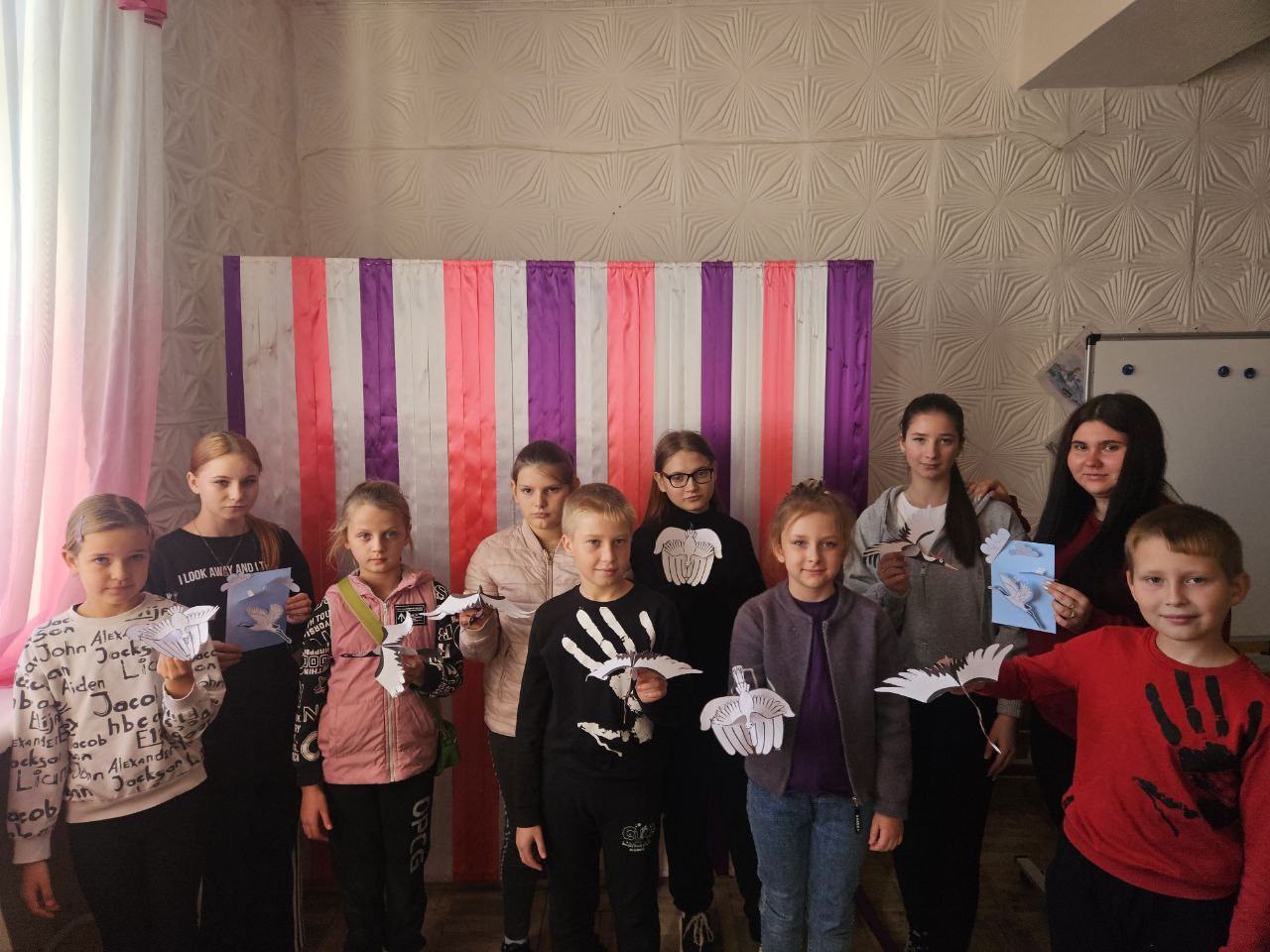 В библиотеке села Новгородковка для детей провели мастер-класс по изготовлению символов памятной даты — белых журавликов. Ребята с усердием и вниманием создавали бумажных птиц, вкладывая в каждую частичку своей души и памяти.
