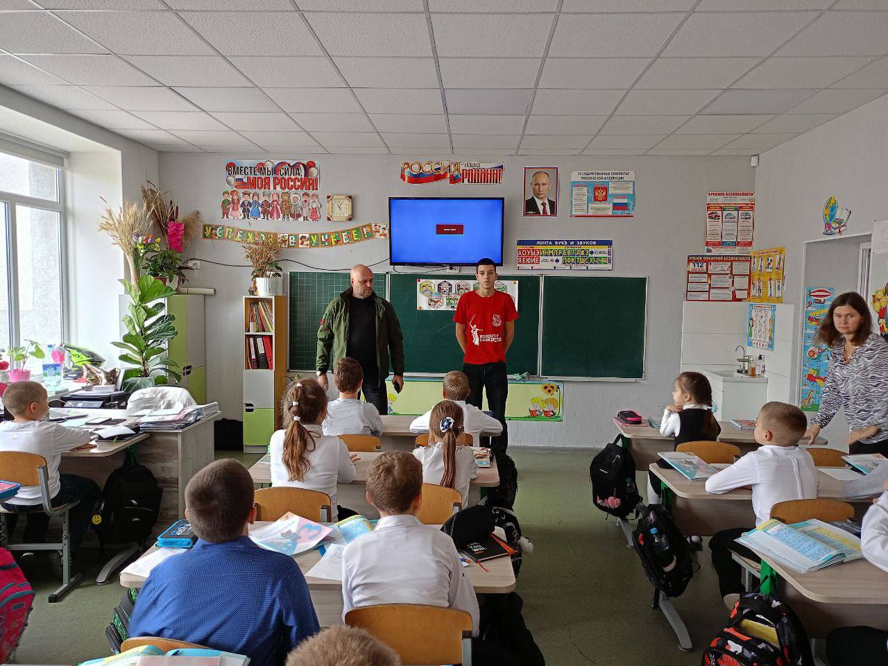 Добровольцы «БОЕВОГО БРАТСТВА» и «Волонтёрской Роты» провели для учеников Мелитопольской школы № 8 занятие по правилам дорожного движения.
