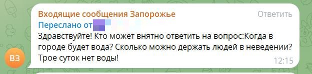 "Из-за неадекватной работы шахты люди увольняются и уезжают. А ещё из-за отсутствия света, воды и тепла. В городе колоссальные проблемы, местные власти бездействуют. Такое ощущение, что в Запорожской области кроме Мелитополя нет других городов", - отмечает подписчик.