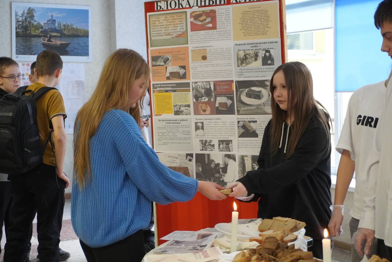 В ходе мероприятия волонтёры раздали ученикам те самые 125 граммов хлеба, которые были минимальной нормой выдачи в Ленинграде в самый тяжелый период блокады — зимой 1941-1942 годов.