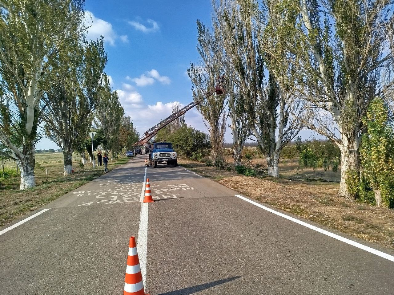 Сотрудники МБУ «Жилсервис» провели работы по обрезке сухих ветвей на въездной аллее в село Новгородковка.
