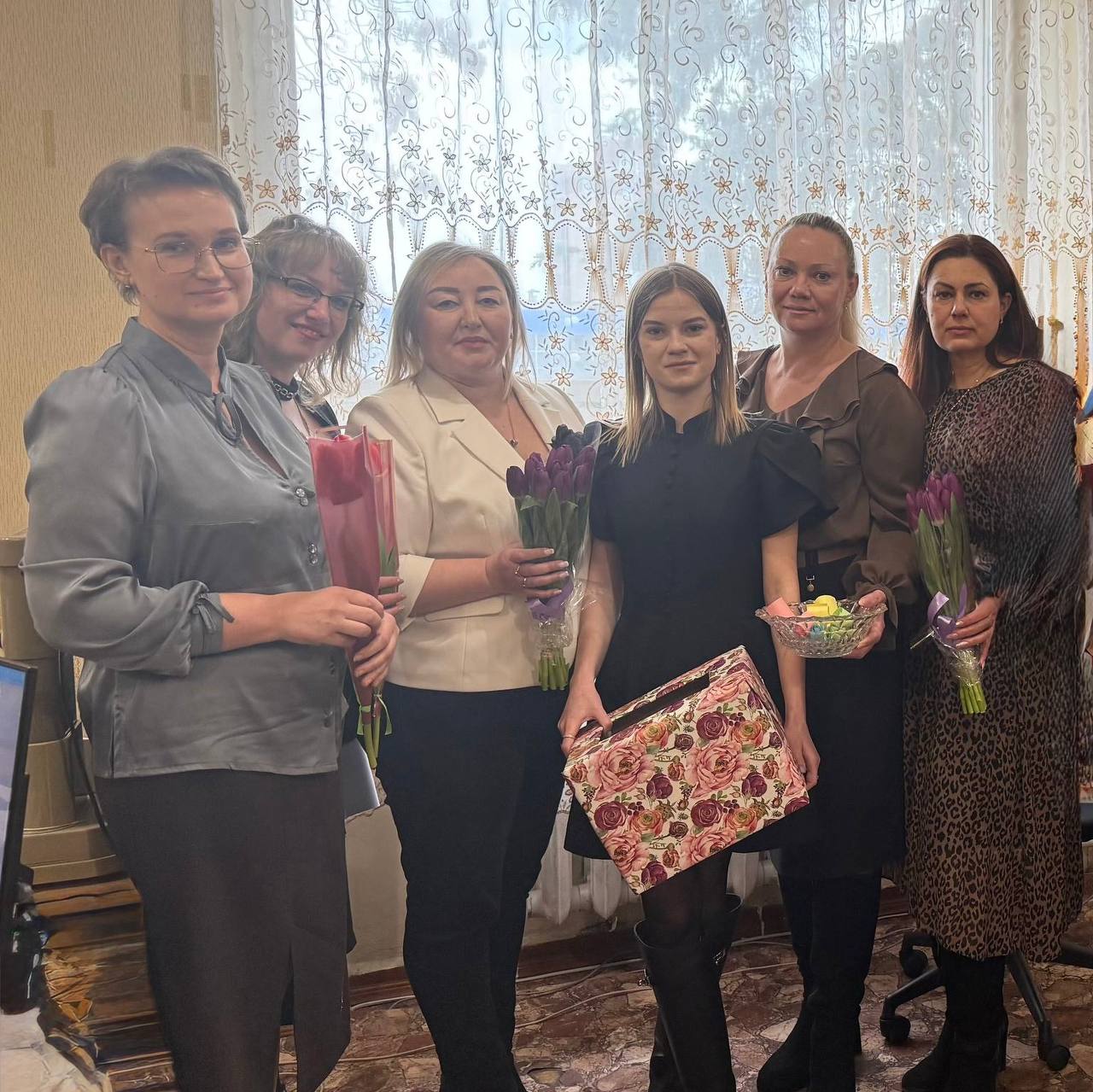 Вместо планерки — волшебные свитки с вопросами на самые разные «женские» темы: от истории праздника до секретов красоты и семейных традиций. Каждая участница тянула свиток наугад, и если ответ был верным — удача улыбалась вдвойне! Счастливицы получали не просто комплименты, а символичный приз-сюрприз.