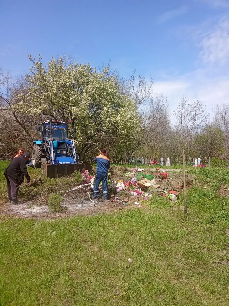 В преддверии поминального дня в поселке Трудовое сотрудники МБУ «Жилсервис» провели работы по наведению порядка на территории кладбища.