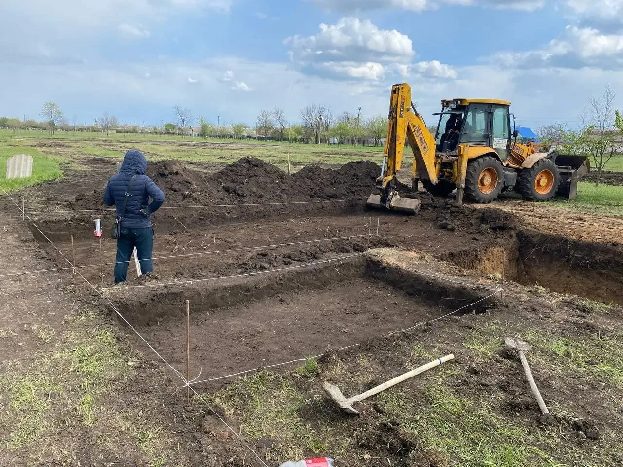 Специалисты выполнили разметку участка под будущий объект, который обеспечит теплом местную школу №22. Параллельно начались земляные работы по устройству фундаментов - для копки грунта используется строительная техника.